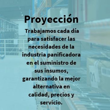 Tenemos el compromiso de satisfacer las necesidades de la industria panificadora en el suministro de sus materias primas, buscando garantizar la mejor alternativa en calidad, precios y servicio.